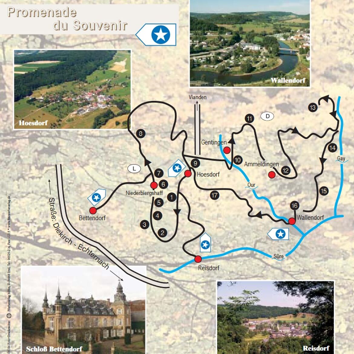 Die Tour startet in Reisdorf, von wo es einen Zuweg zum Rundgang gibt. Es ist auch möglich, in Bettendorf zu starten. Dort gibt es ebenfalls einen Zuweg zum Rundgang. Es gibt verschiedene Möglichkeiten, den Weg abzukürzen. Diese sind vor Ort beschildert.