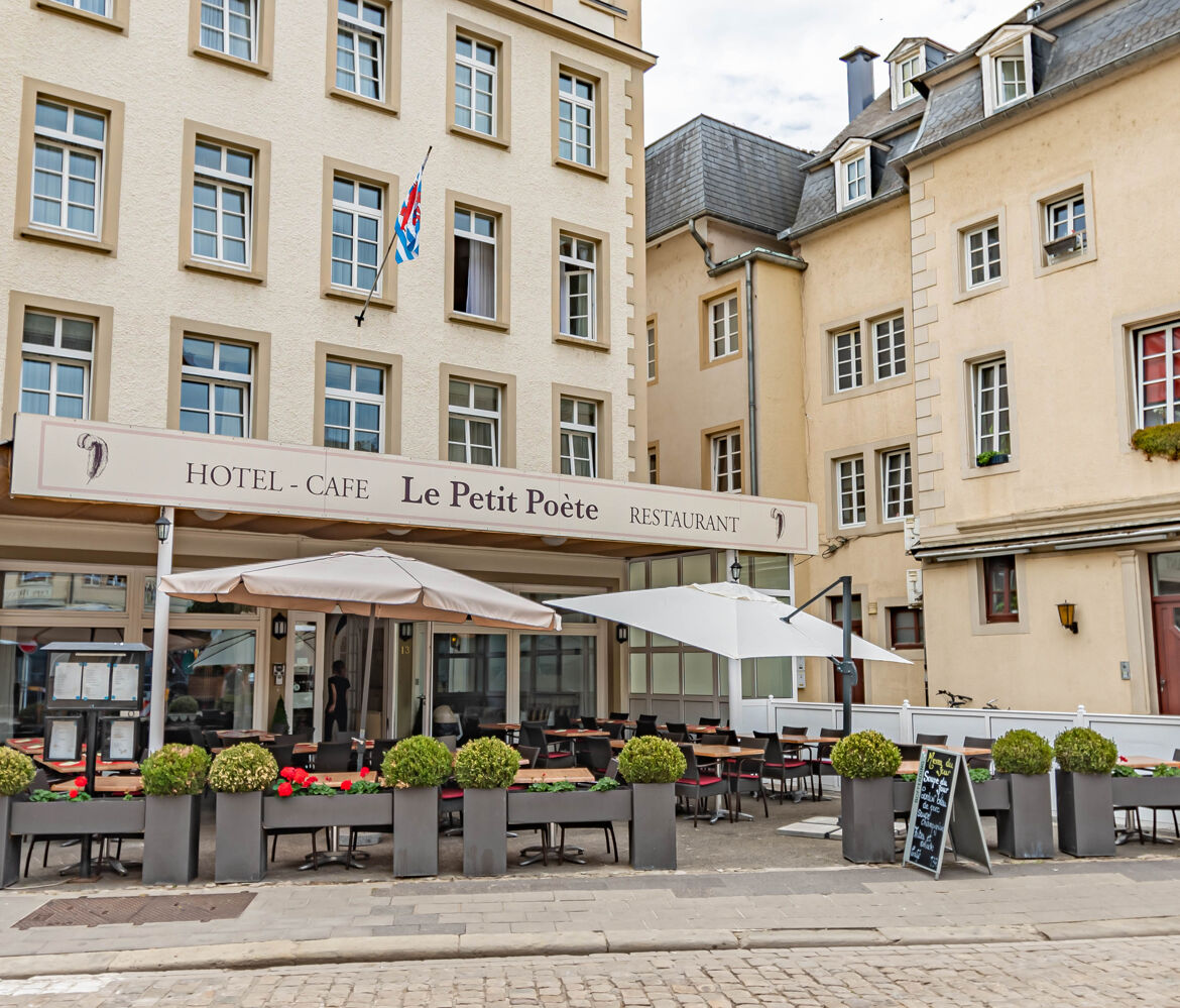 Das Hotel, das im 19. Jahrhundert erbaut wurde, liegt im Zentrum der ältesten Stadt Luxemburgs, direkt am Marktplatz, in Echternach. Früher hieß das Hotel aufgrund seiner zentralen Lage sogar « Hotel de la Place ».