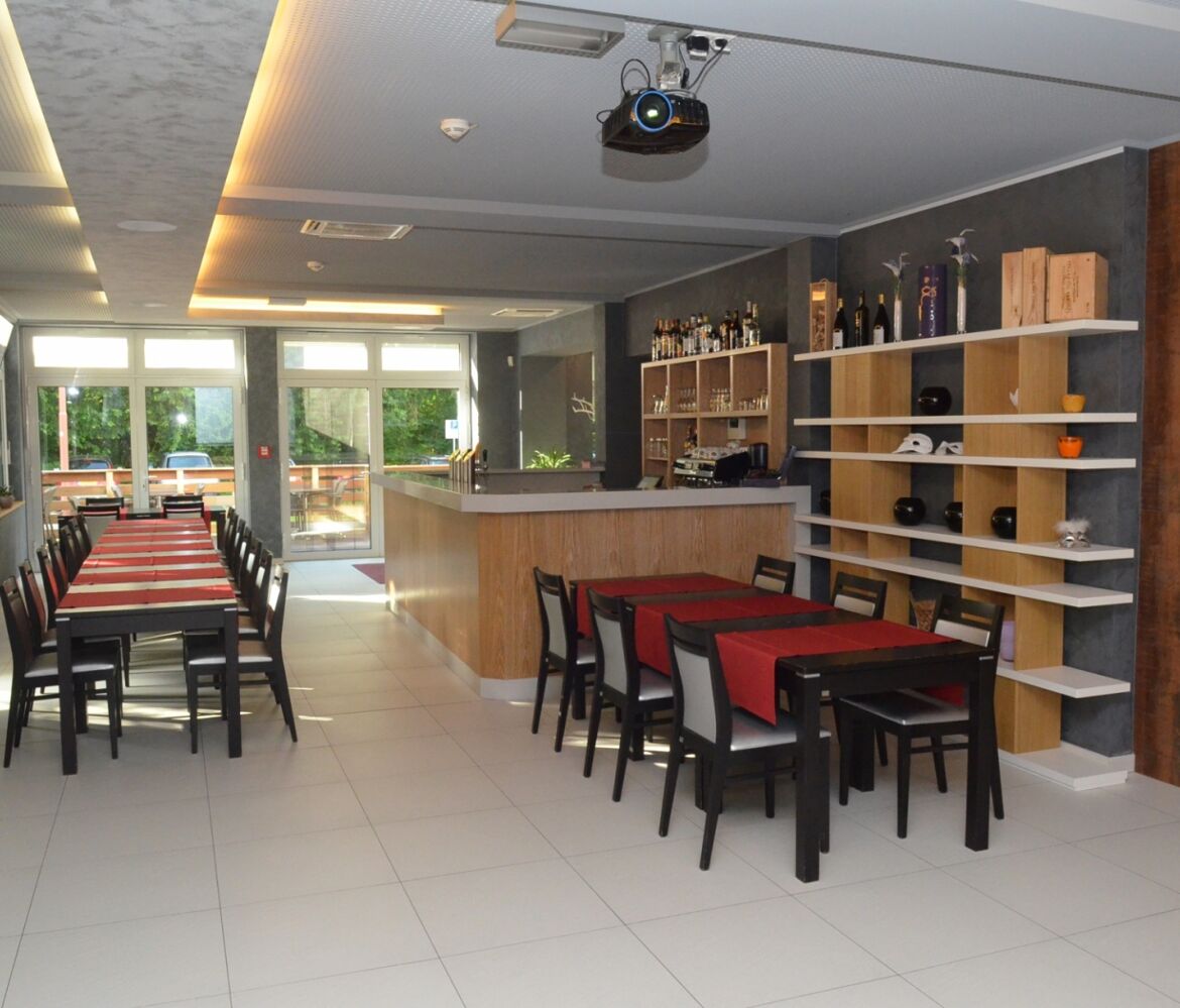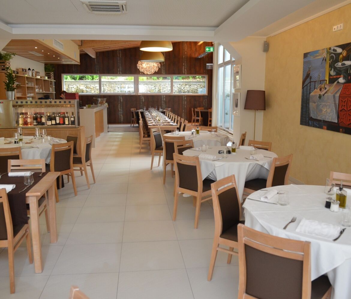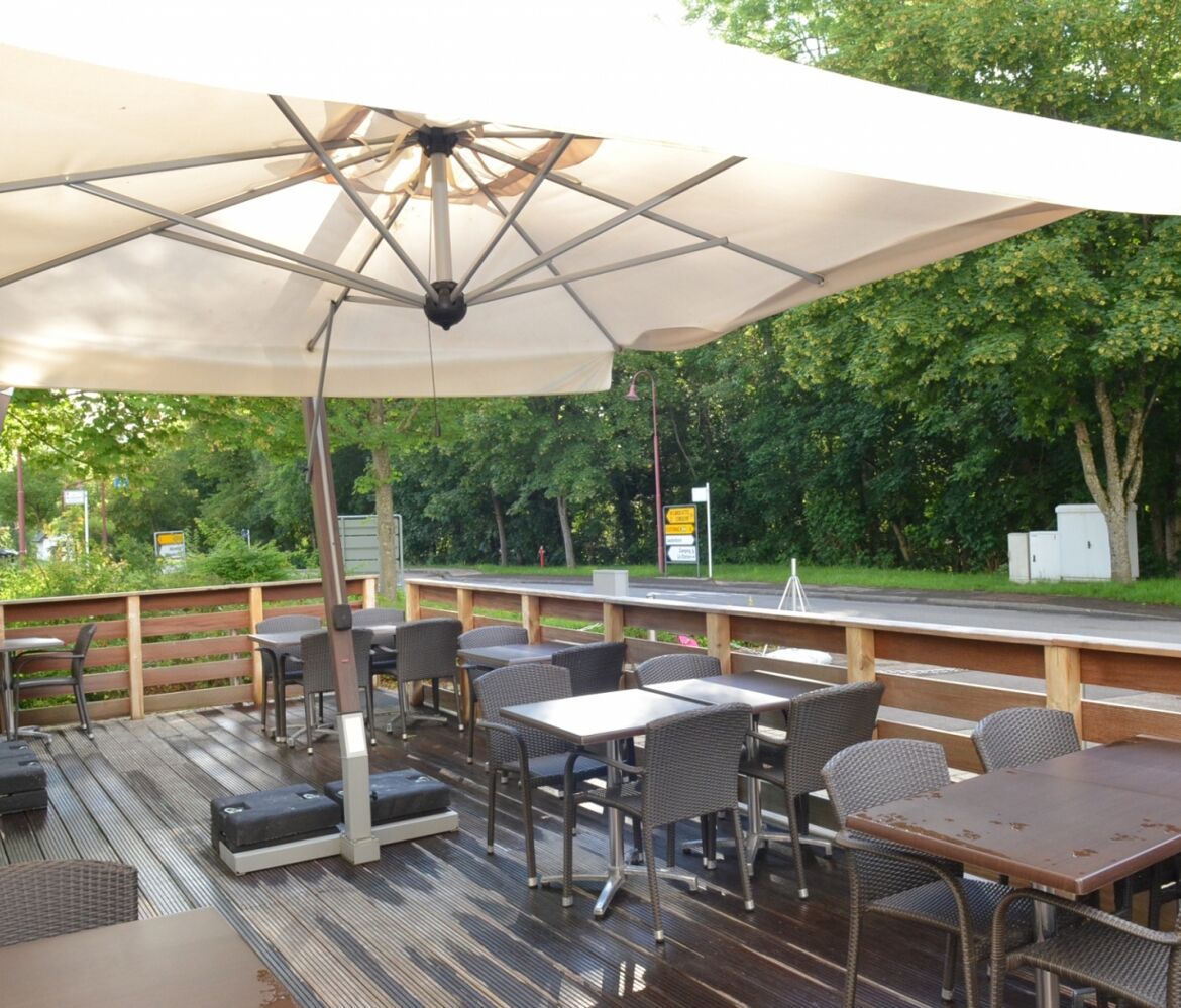 In einem hellen und modernen Rahmen bietet das Restaurant eine Karte mit vielfältigen Rezepten an, wie zum Beispiel gegrilltes Fleisch und Fisch, oder noch eine traditionelle Küche aus der Region Müllerthal - Kleine Luxemburger Schweiz. Das Restaurant kann bis zu 80 Gästen empfangen. Es ist ebenfalls auf die Organisation von Events spezialisiert wo vom schönen Speisesaal profitiert werden kann.