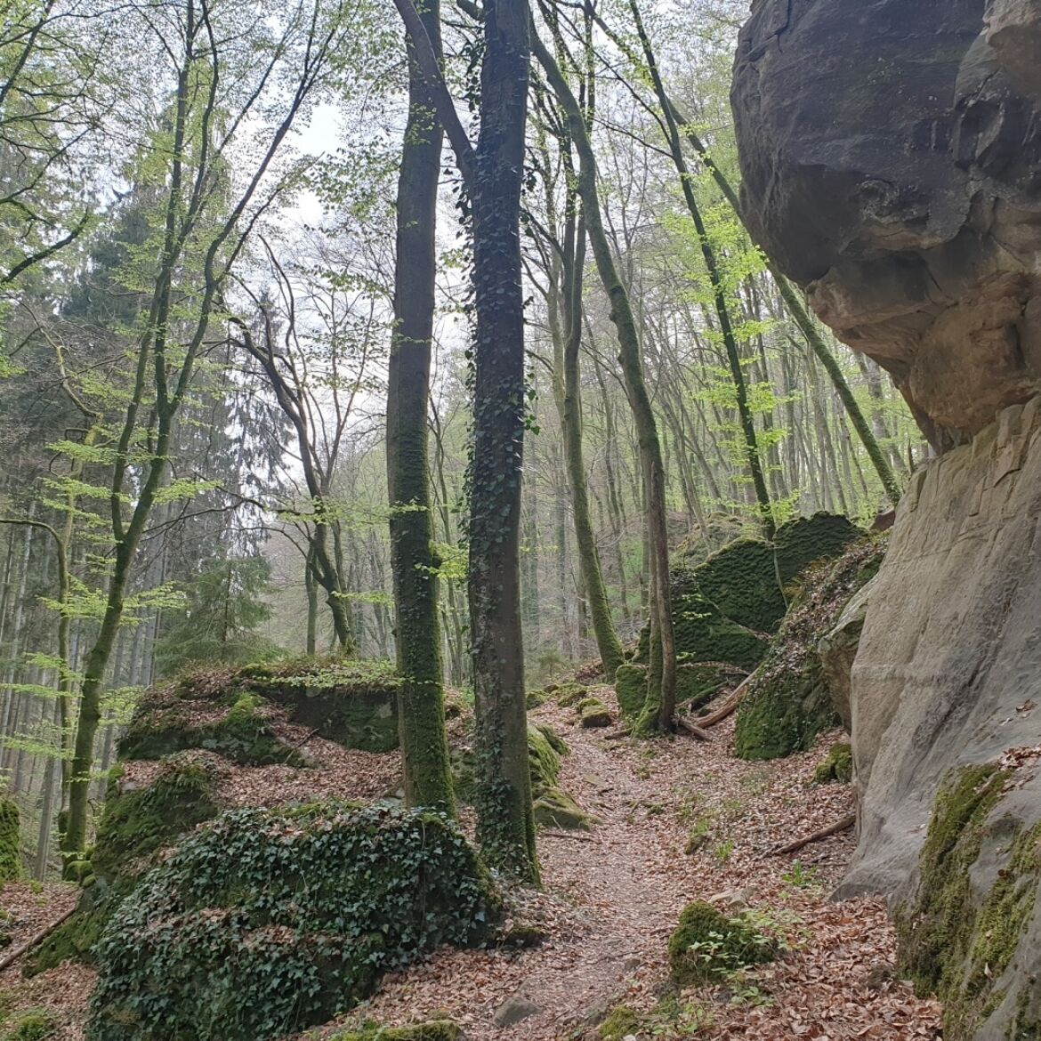 Highlight dieser Wanderung ist sicherlich die Ruine der Heringer Burg. Die ehemalige Fliehburg diente den Heringer Rittern als sicherer Zufluchtsort. Heute laden die in den Felsen gehauenen Mauerreste zum Entdecken und Erforschen ein.