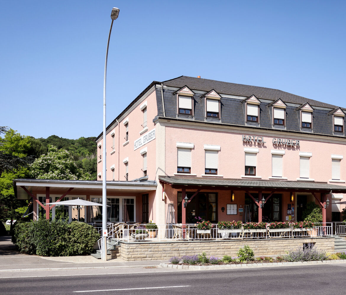The Gruber family has been welcoming guests on the banks of the Sûre in Steinheim for three generations. The hotel is located on Route 1 of the Mullerthal Trail, just 4 km from Echternach. The PC3 cycle path, which connects Echternach with Wasserbillig, runs right outside the front door.