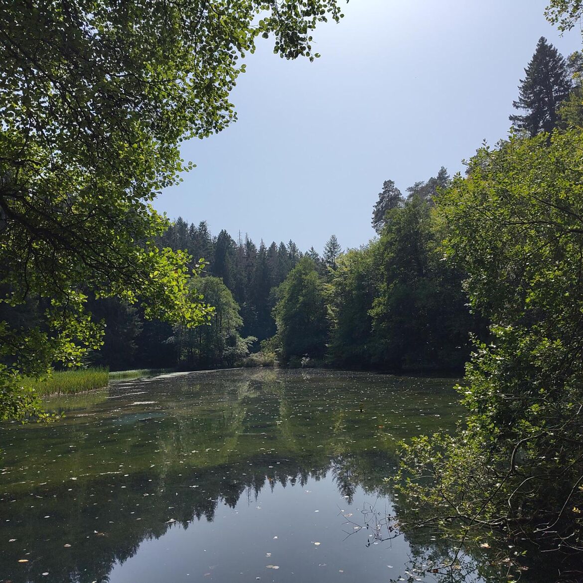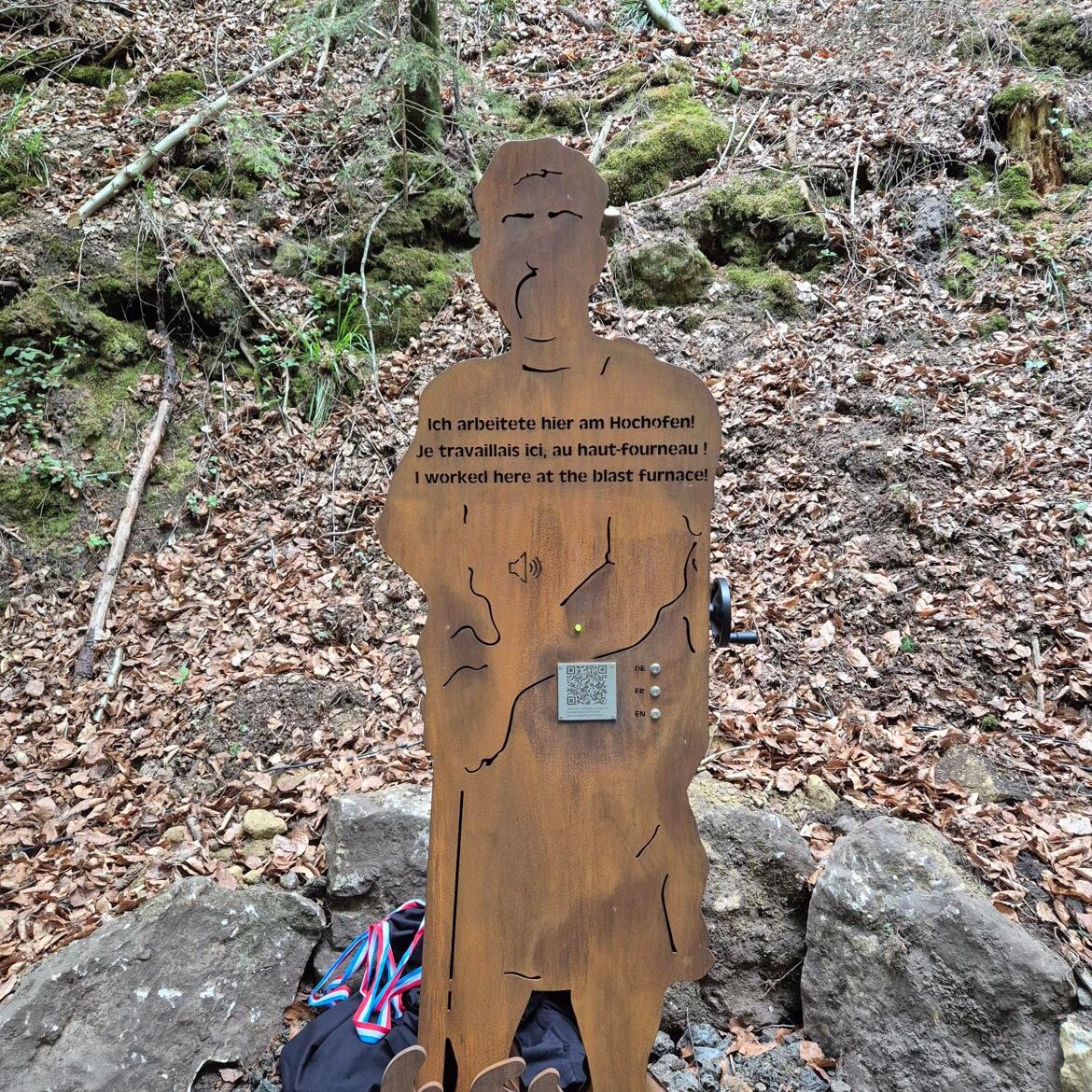 From there, it continues down stairs to the Al Schmelz, a geotope. The small pond is a last visible relic from the time of the old ironworks. Via a QR code and an interactive station, you gain exciting insights into the history of the place.