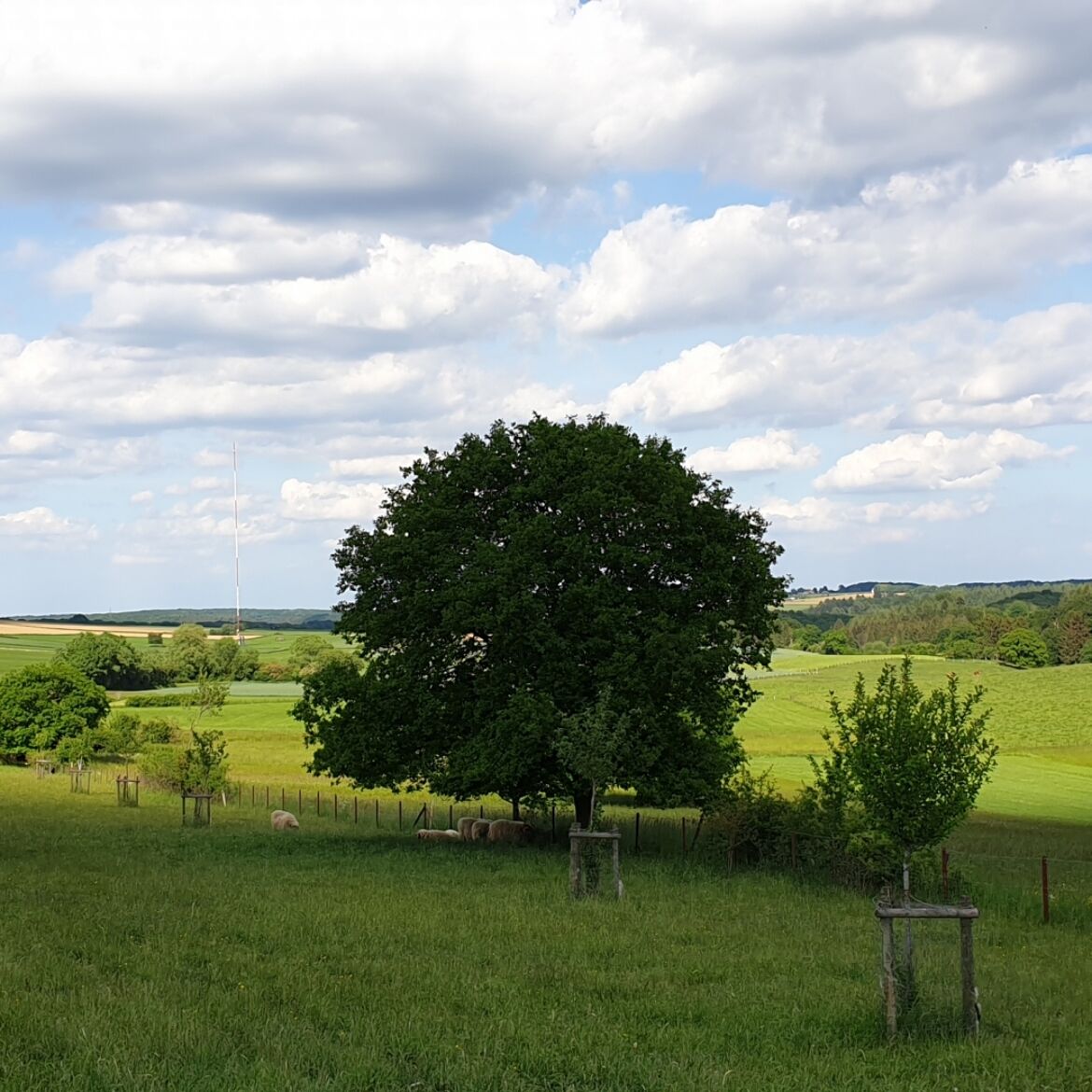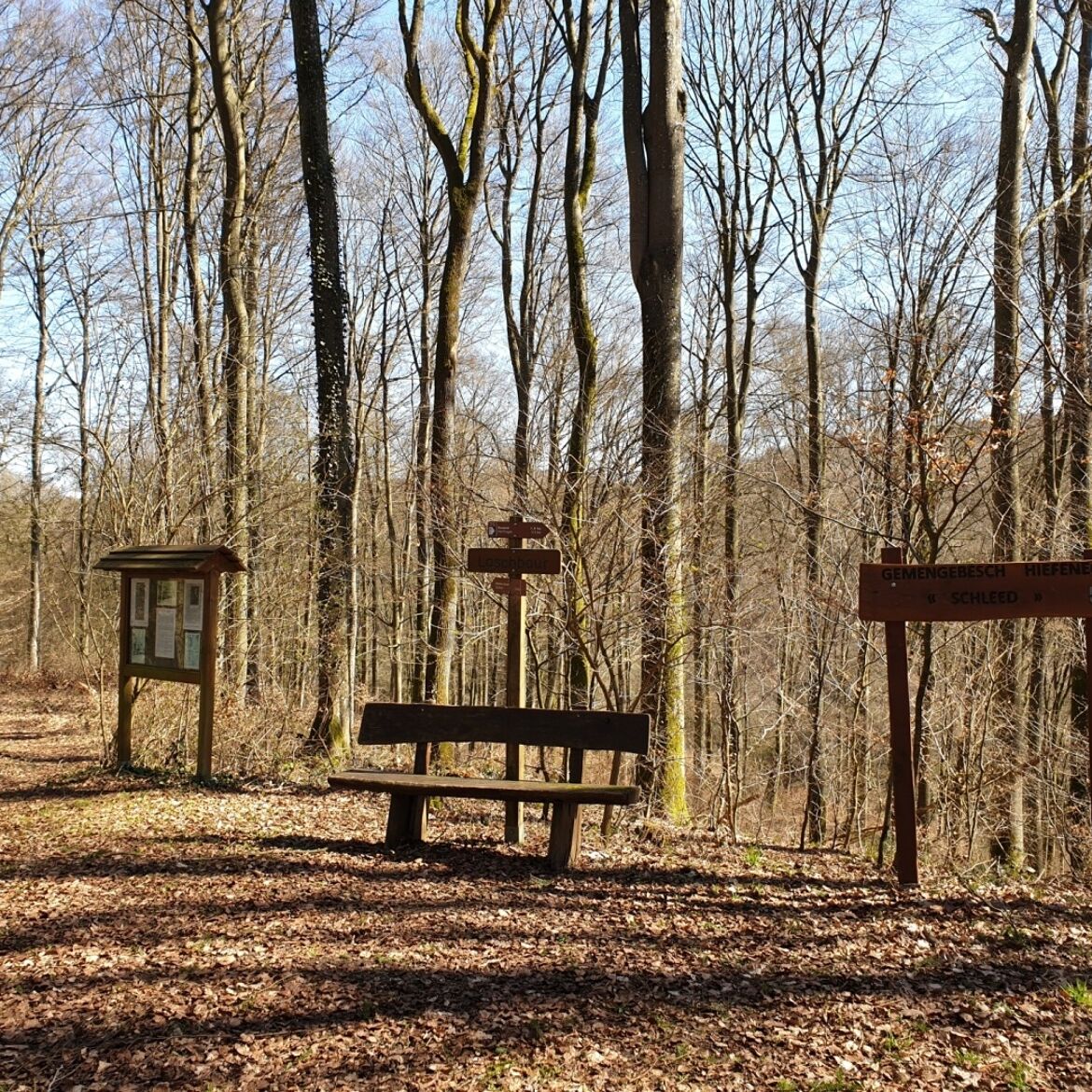 This route leads through wide fields with beautiful views over Heffingen. From the starting point at the school, it soon turns right across the fields to Huechemd, a small woodland to the right of the route, where benches with beautiful views invite you to rest. Further on, the route passes through dense forest on the slope of the Schwarze Ernz valley. Passing through the small village of Reuland, the route leads back towards Heffingen and passes the Geotop Héikräiz of the UNESCO Global Geopark Mullerthal, a stone cross, and a small chapel with a beautiful view.