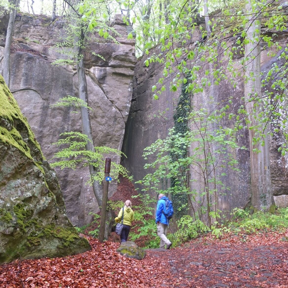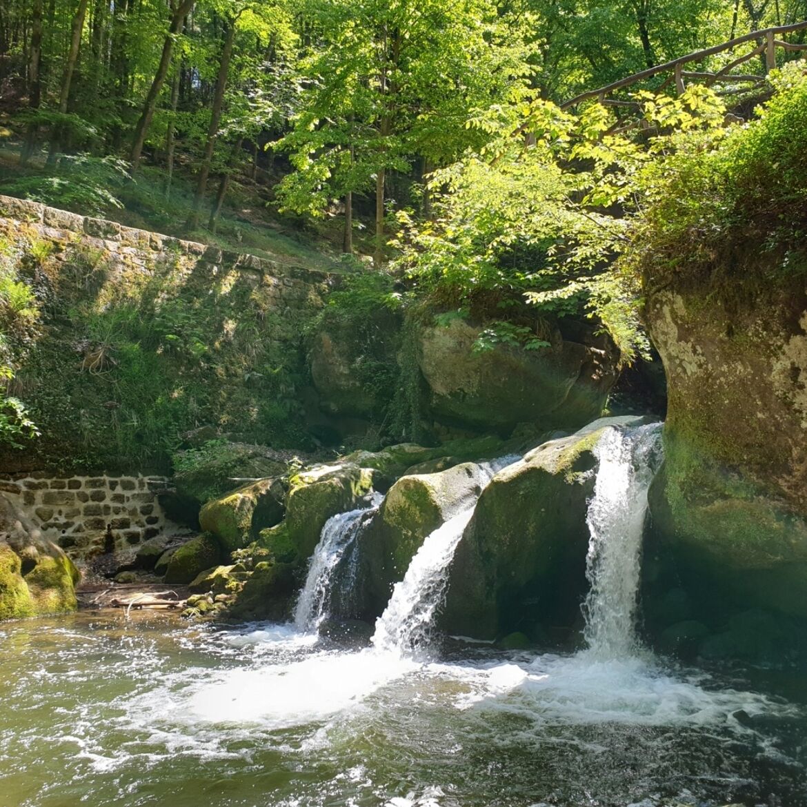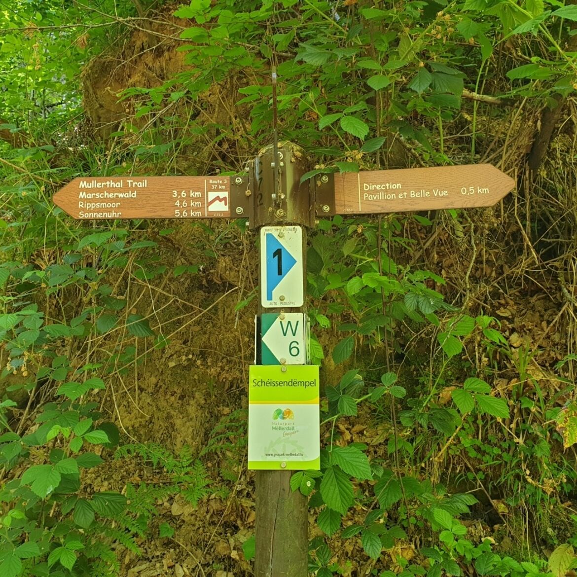 It continues towards Müllerthal. Through a beautiful forest and rock landscape, the hiker arrives at the well-known Schéissendëmpel waterfall, which was already described in Route 2. After about one kilometer, the village of Müllerthal is reached again.