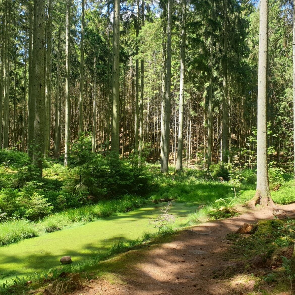 Along the Weiße Ernz, which is accompanied by an open stream valley, the Mullerthal Trail continues southwards towards Blumenthal. This section runs over the high plateau and offers excellent views and vistas.