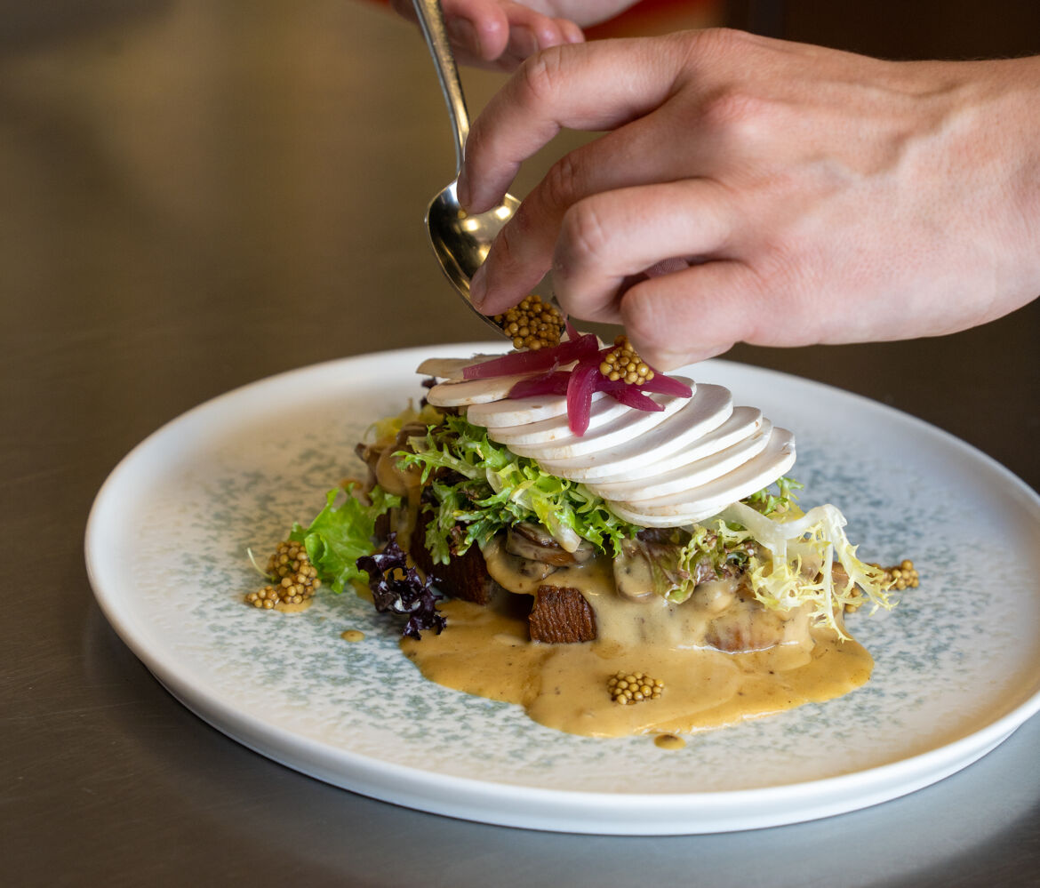 During the day and if the weather allows it, regional, fresh homemade dishes and drinks are served on the terrace. The menu features gourmet dishes, traditional French recipes prepared with fresh produce from local producers.