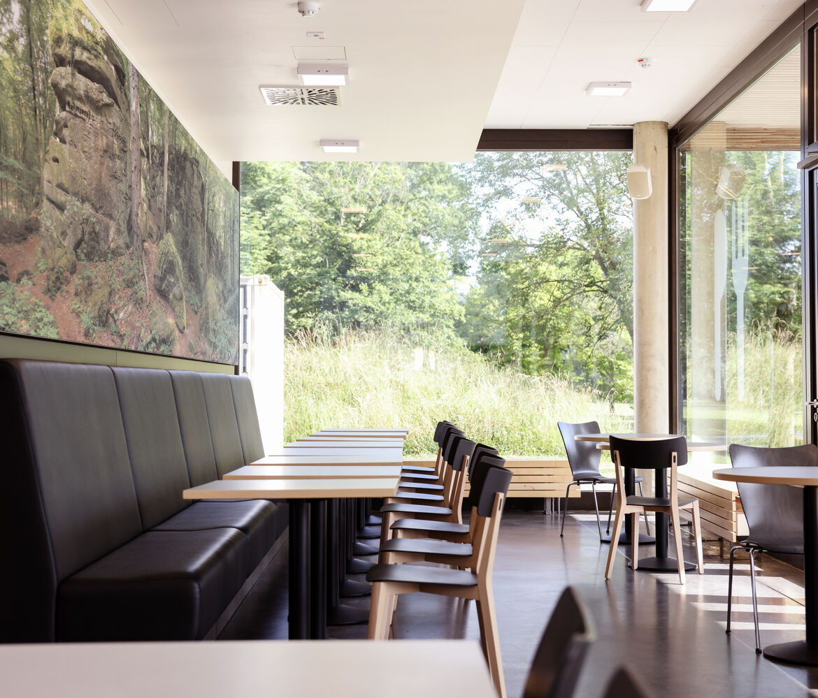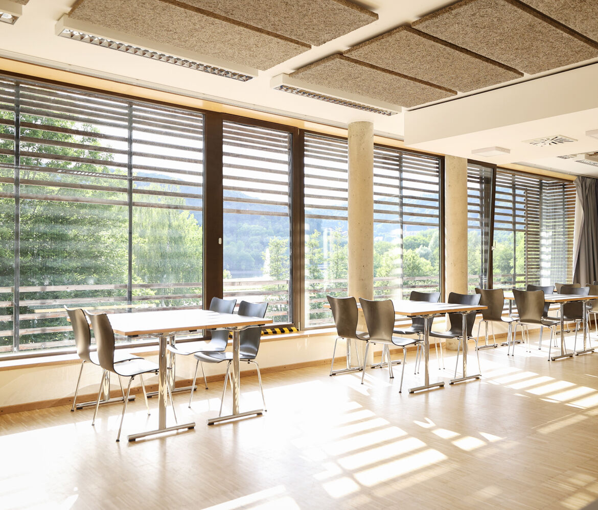 Stay at the sports hostel Echternach with a view over the lake. Whether on the climbing wall, in the sports hall or in the trampoline park, an active holiday awaits guests of all ages in the heart of the Mullerthal region, Luxembourg's Little Switzerland and the oldest town in Luxembourg.