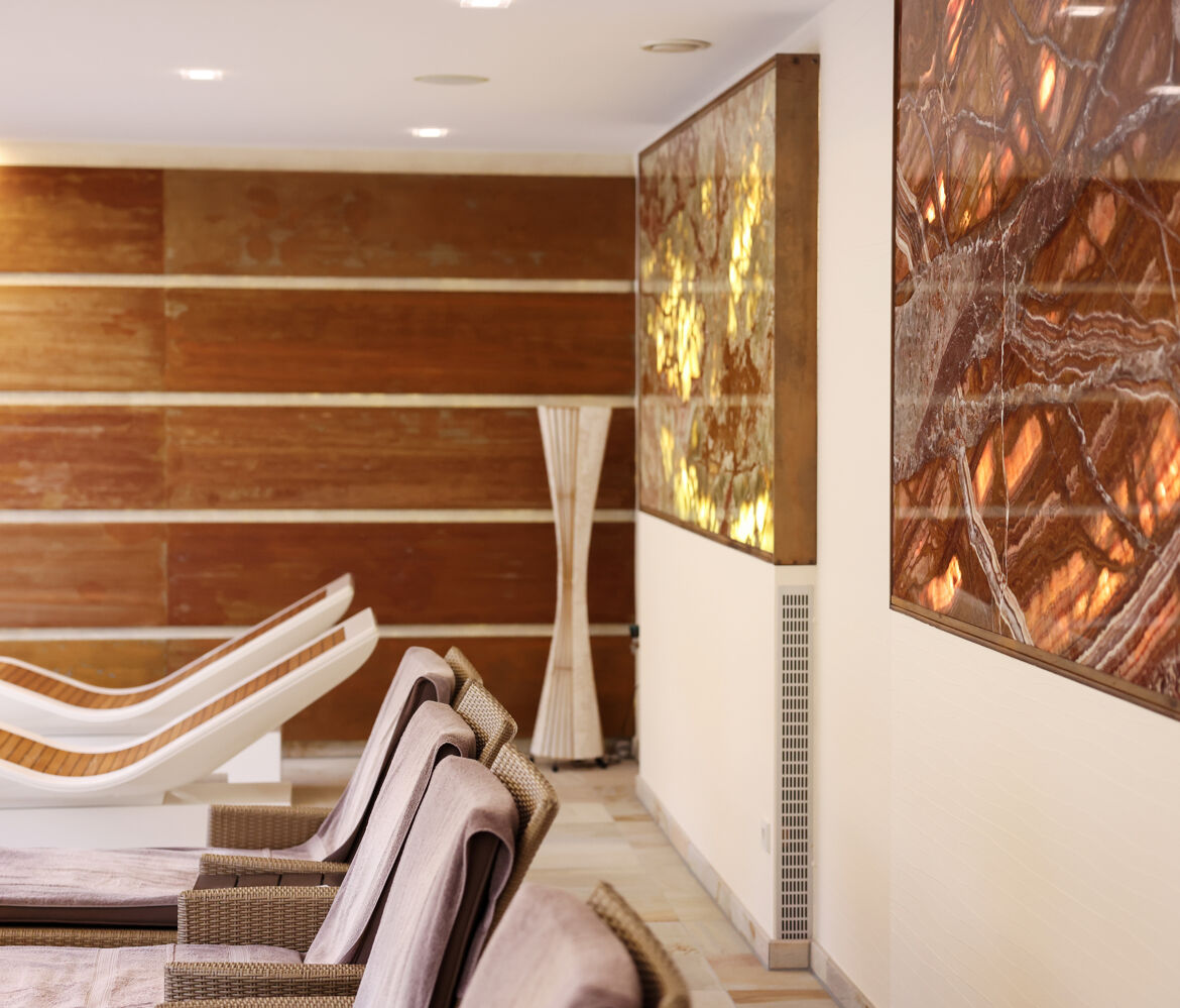 L'espace bien-être est très bien équipé : Piscine couverte, sauna finlandais, bain turc, bain aromatique, salle de repos avec chaises longues chauffées, salle de fitness.