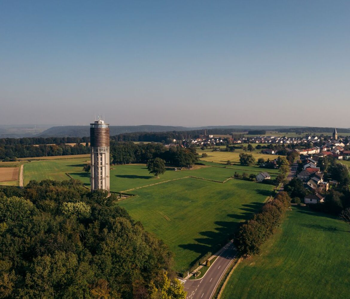 La plateforme panoramique, qui culmine à 50 mètres, vaut particulièrement la montée. Vous y jouirez d’une vue imprenable sur Berdorf et ses alentours.