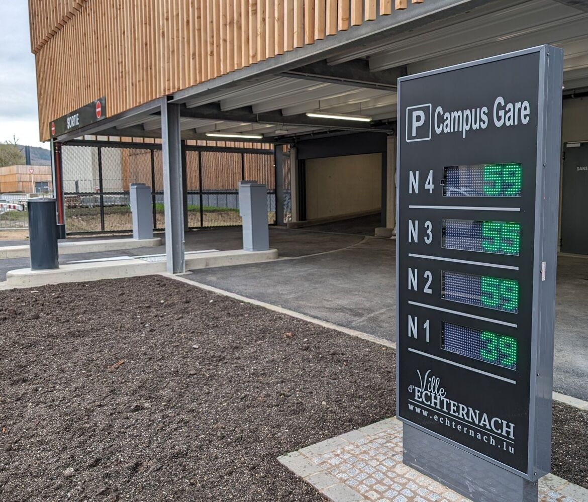 Le parking moderne du Campus Gare dispose de 235 places de stationnement au total, dont 10 places réservées aux véhicules électriques et 8 autres pour les personnes à mobilité réduite.