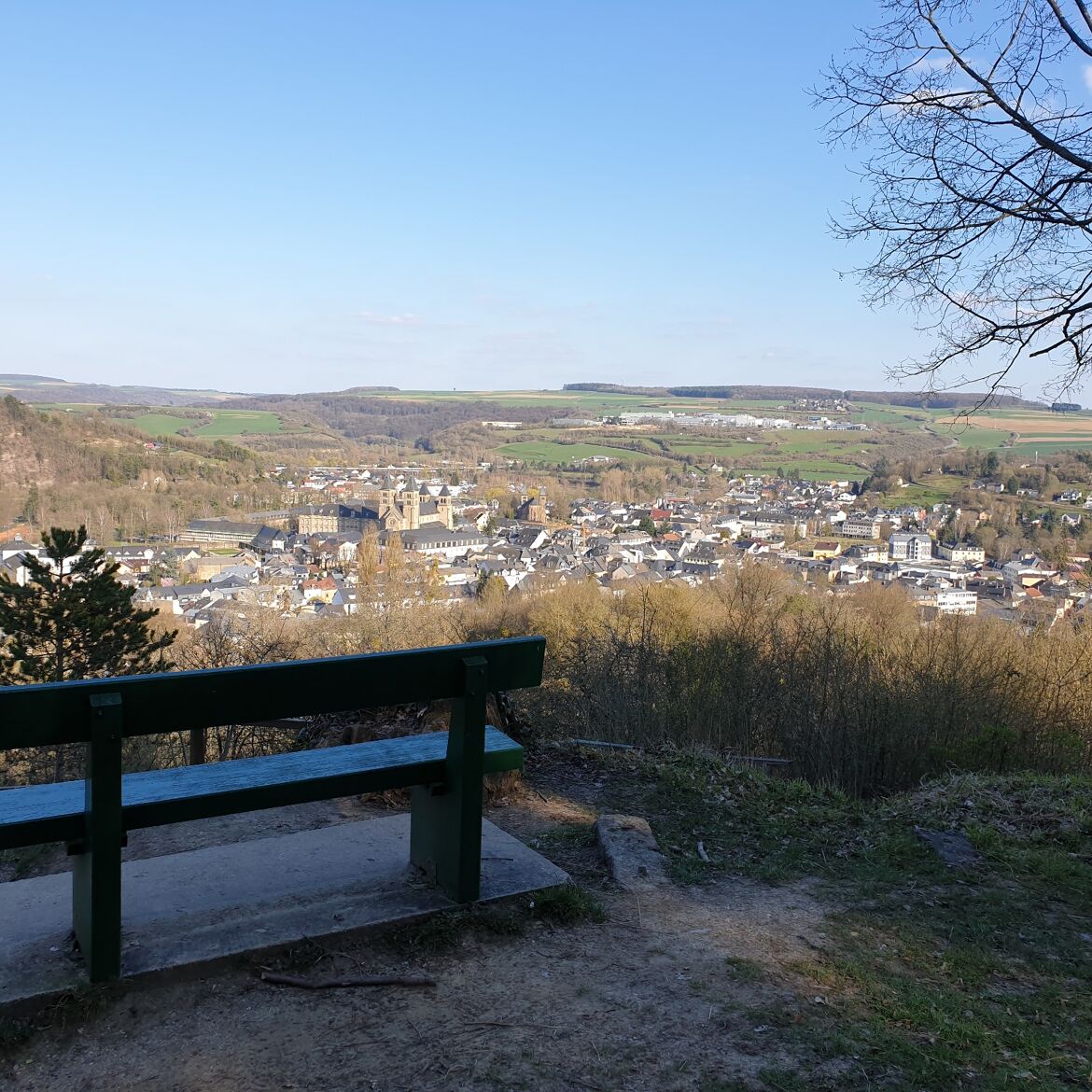 De là, la descente mène jusqu'à la vallée de la Sauer, longeant le chemin pendant un moment. Enfin, le chemin mène ensuite au parc municipal d'Echternach. À travers les jardins de l'ancienne abbaye, on revient à la basilique.
