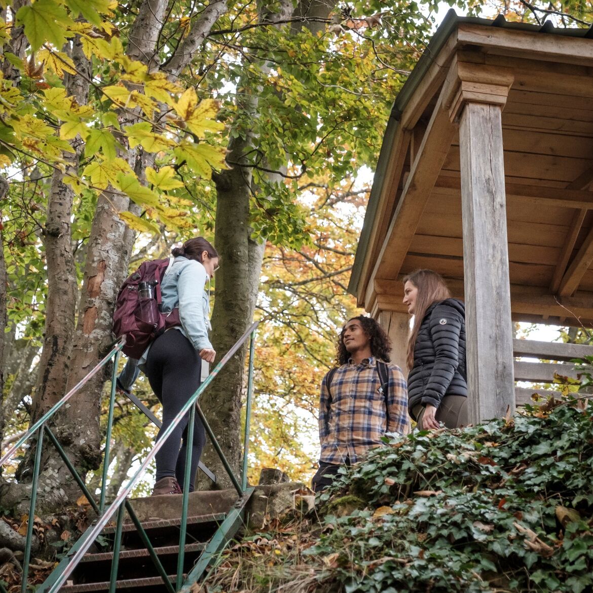 Le chemin comprend quelques passages plus exigeants, comme la montée au Troosnkneppchen, les escaliers dans la gorge Wollefsschlucht et la descente depuis la Geierslee.