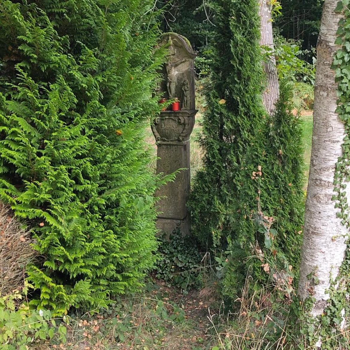 Le parcours commence à Angelsberg et passe d'abord devant un ancien calvaire, avant de traverser des champs ouverts pour pénétrer dans la forêt. Sur de larges chemins forestiers, le parcours serpente à travers une dense verdure, bordée de formations rocheuses remarquables, partiellement visibles dans le terrain. Ensuite, il traverse la route, longe les champs, pour revenir au point de départ.