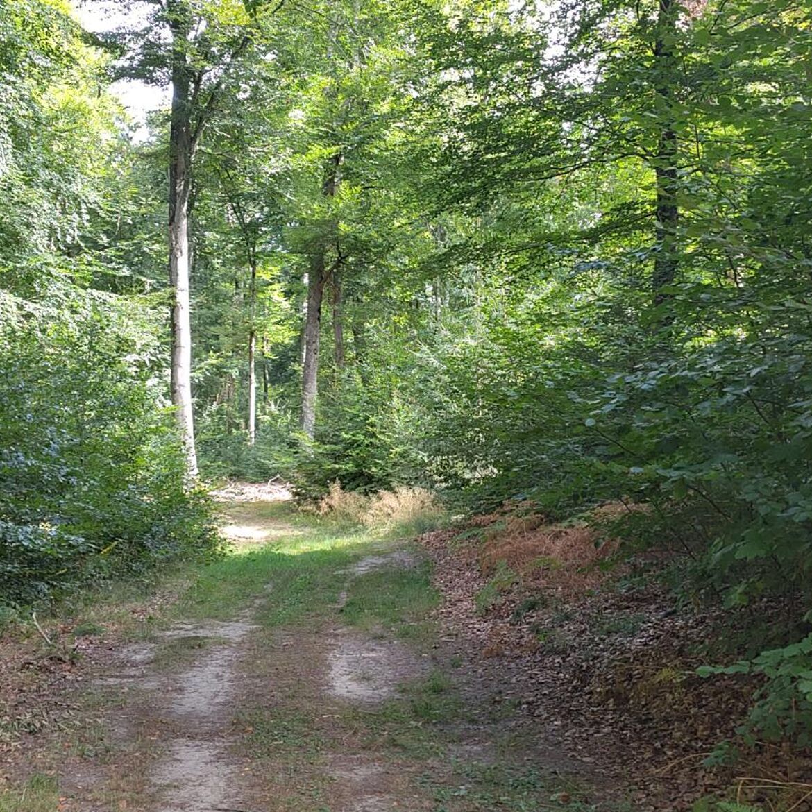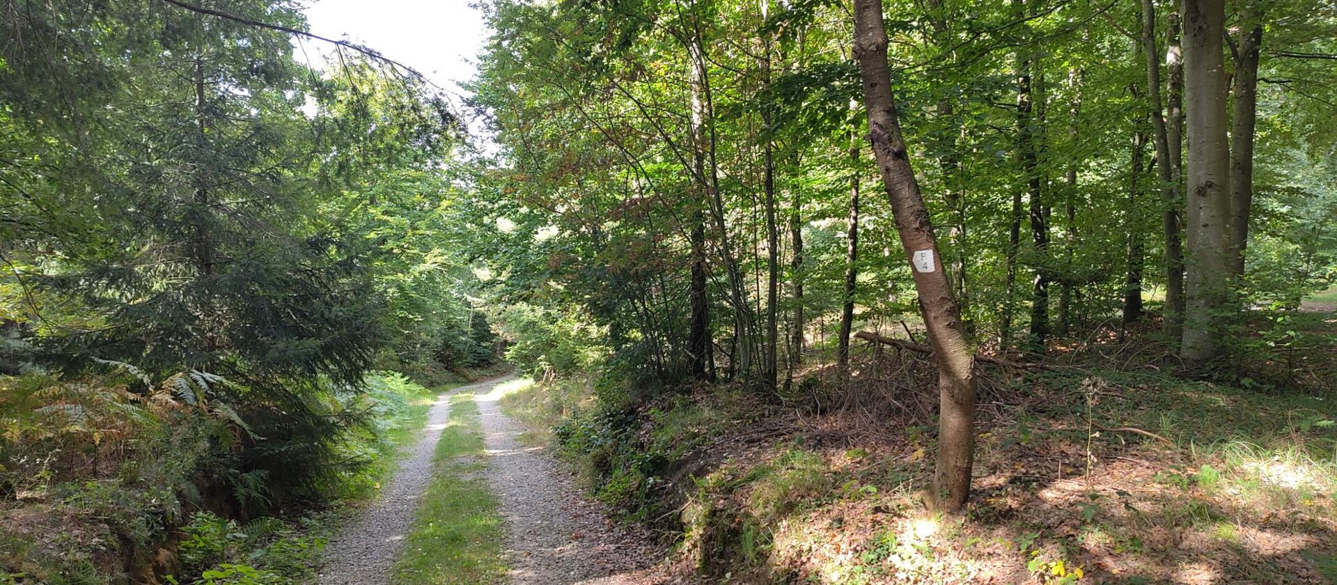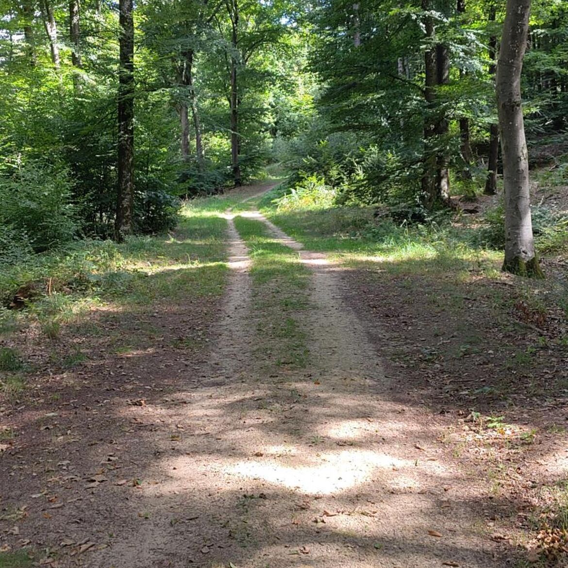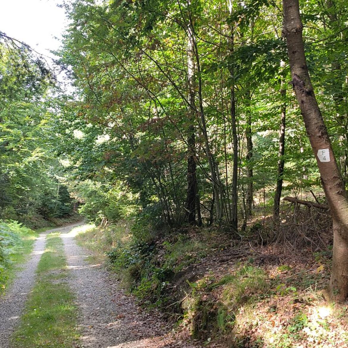 Balade tranquille à travers des champs ouverts et à travers la forêt le long de formations rocheuses.