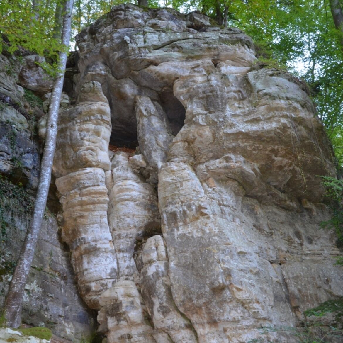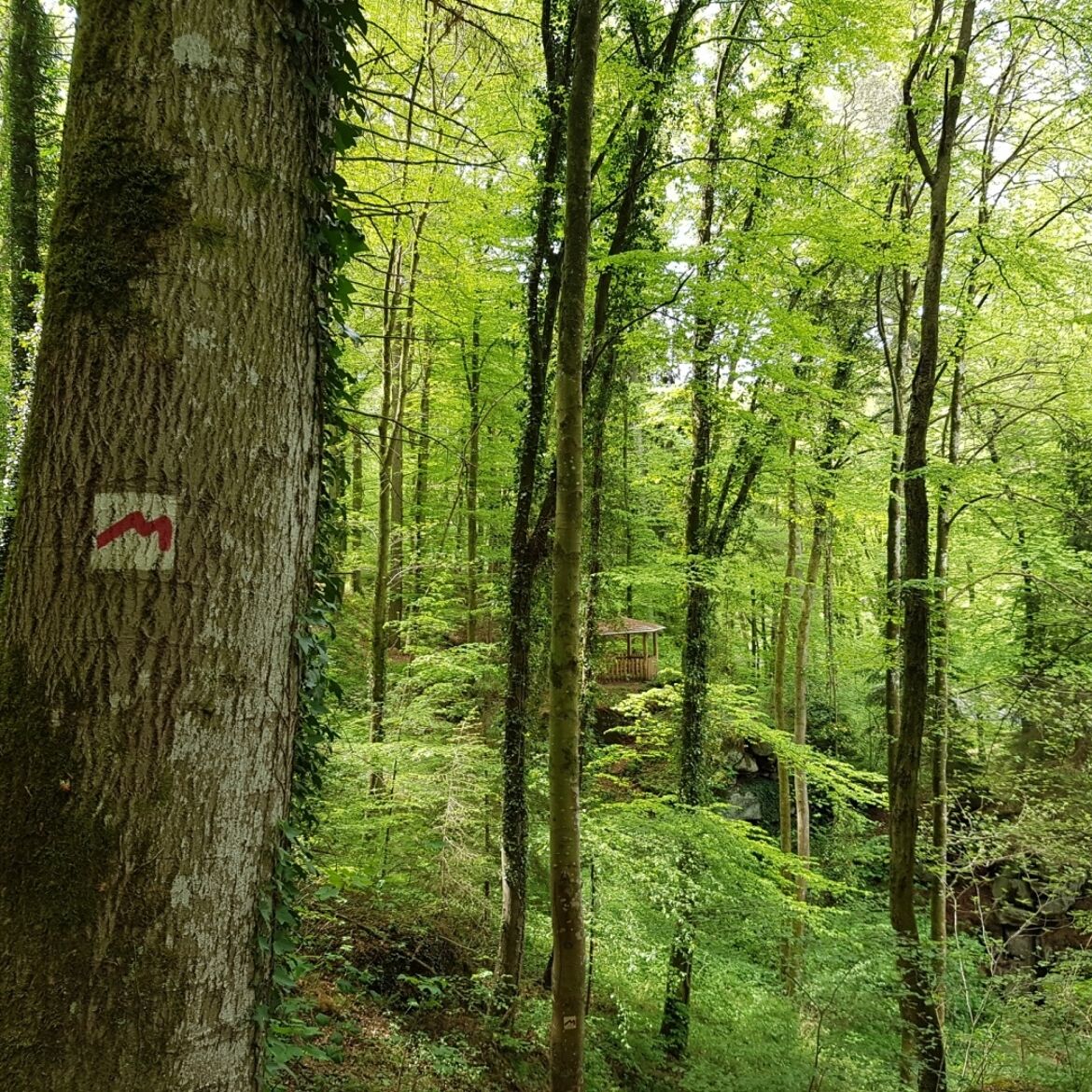 Cette balade commence par une montée raide jusqu'à une maisonnette en bois dans la forêt. Elle se poursuit sur des sentiers étroits longeant de nombreuses formations rocheuses et des ruisseaux pétillants.