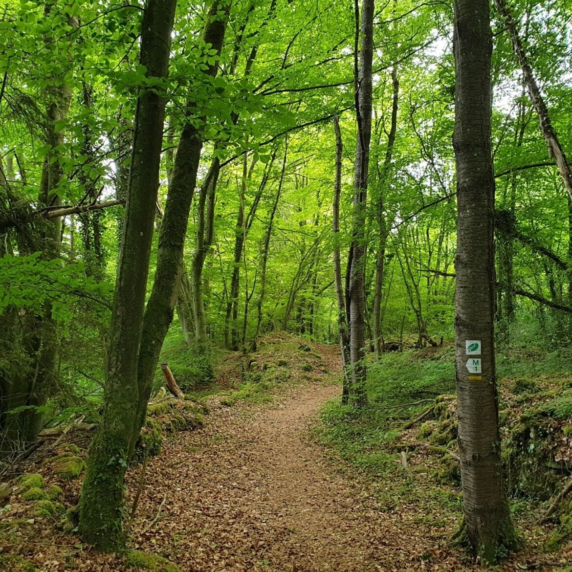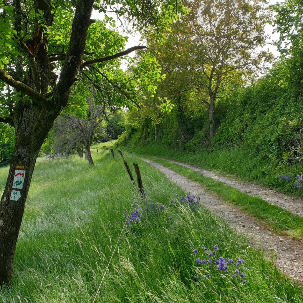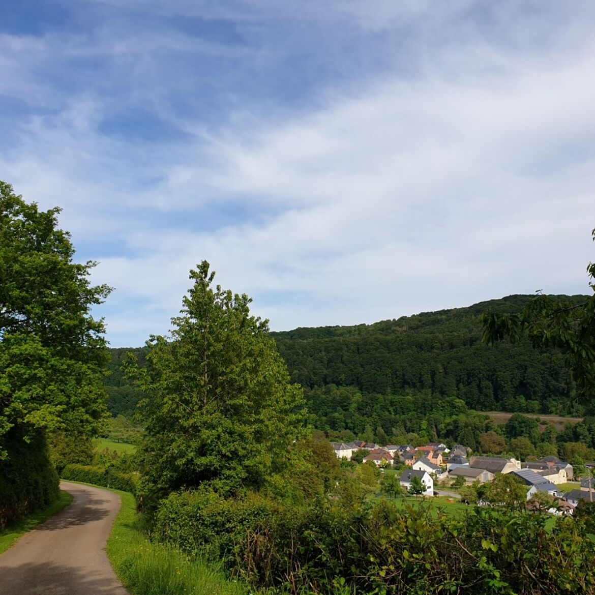 Gevarieerde wandeling door typische landschappen met weideboomgaarden, in Luxemburg "Bongerten" genoemd, en traditionele droog gemetselde stenen muren.