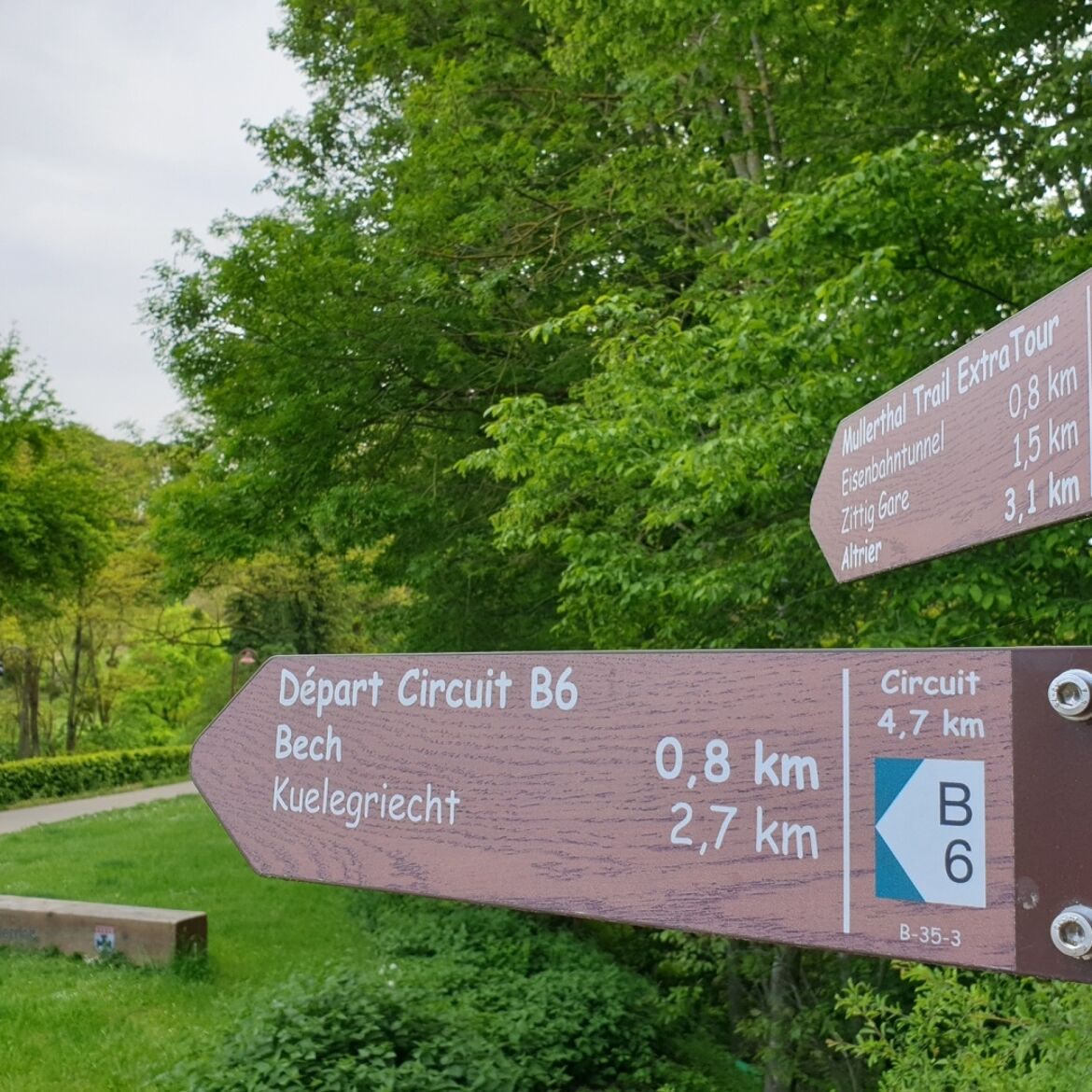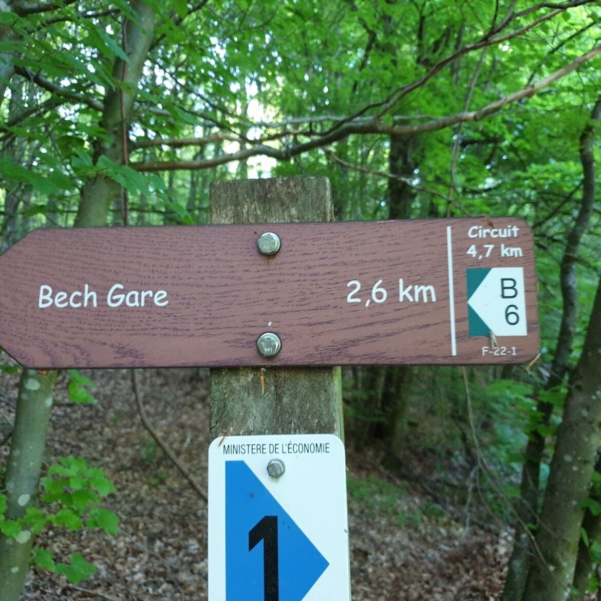 Deze wandeling voert via bospaden rond het dorp Bech. Het wandelpad begint bij het treinstation van Bech. In het prachtige voormalige stationsgebouw is nu een microbrouwerij. Ernaast is een restaurant. Eerst loopt de wandeling door het dorp en vervolgens langs de Sauerbaach. Daarna gaat het verder door het bos over rustige bospaden en langs indrukwekkende rotsformaties terug naar het beginpunt.