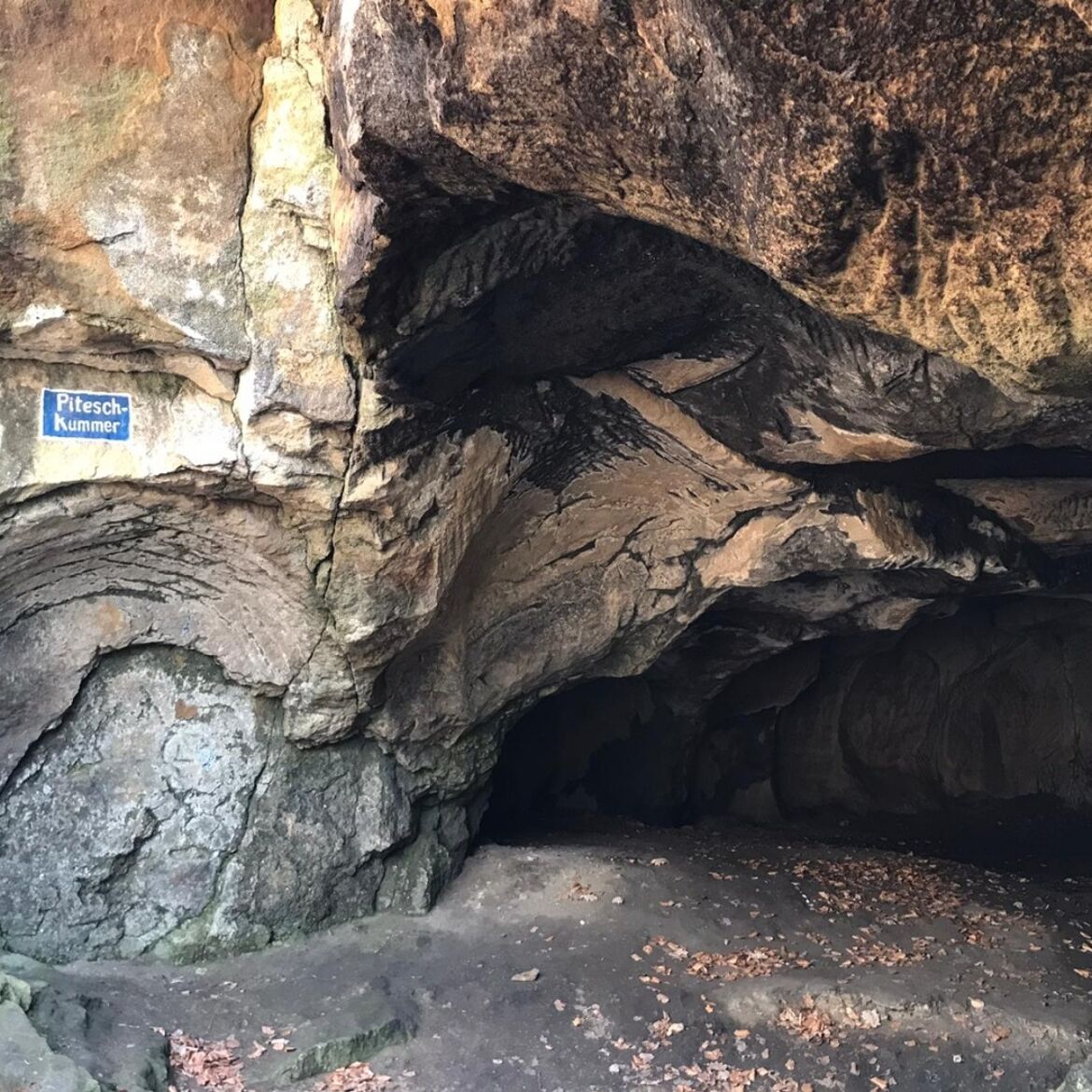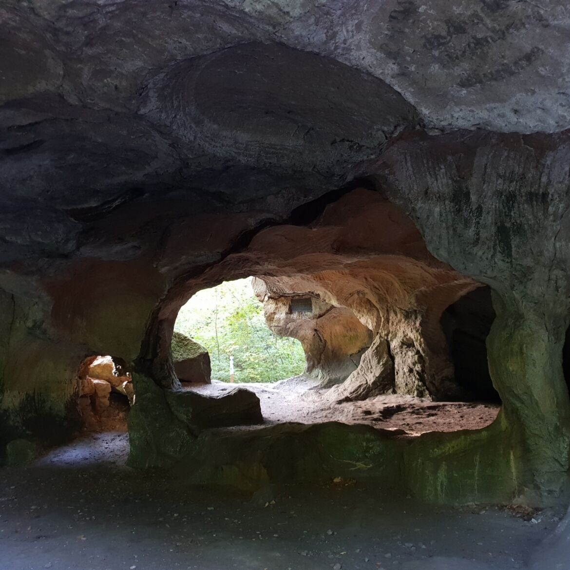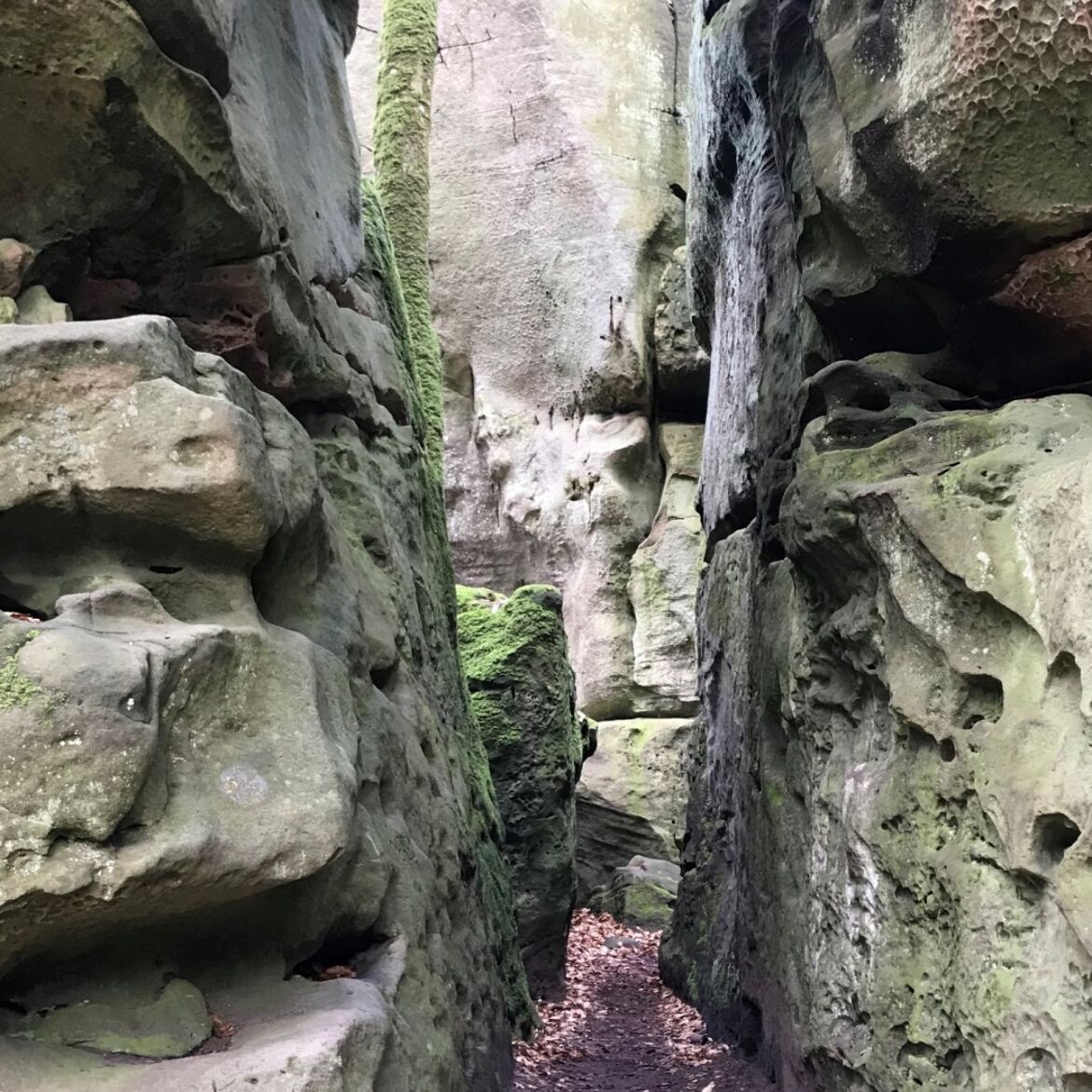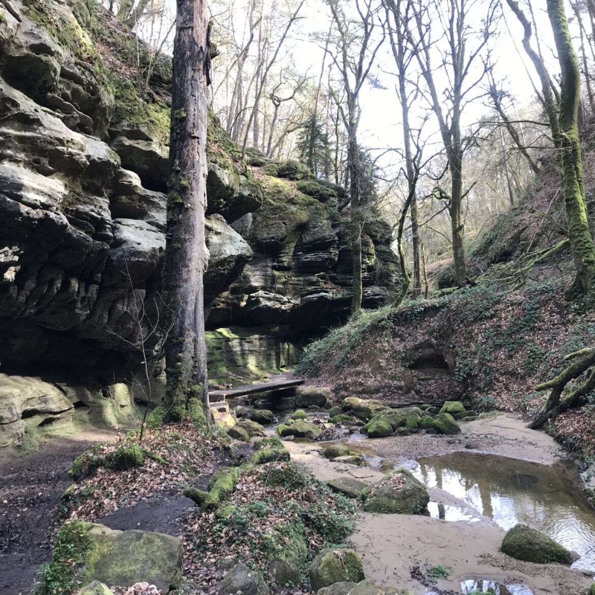 De Wolfsschlucht is een steile, gladde spleet waar het pad doorheen slingert.