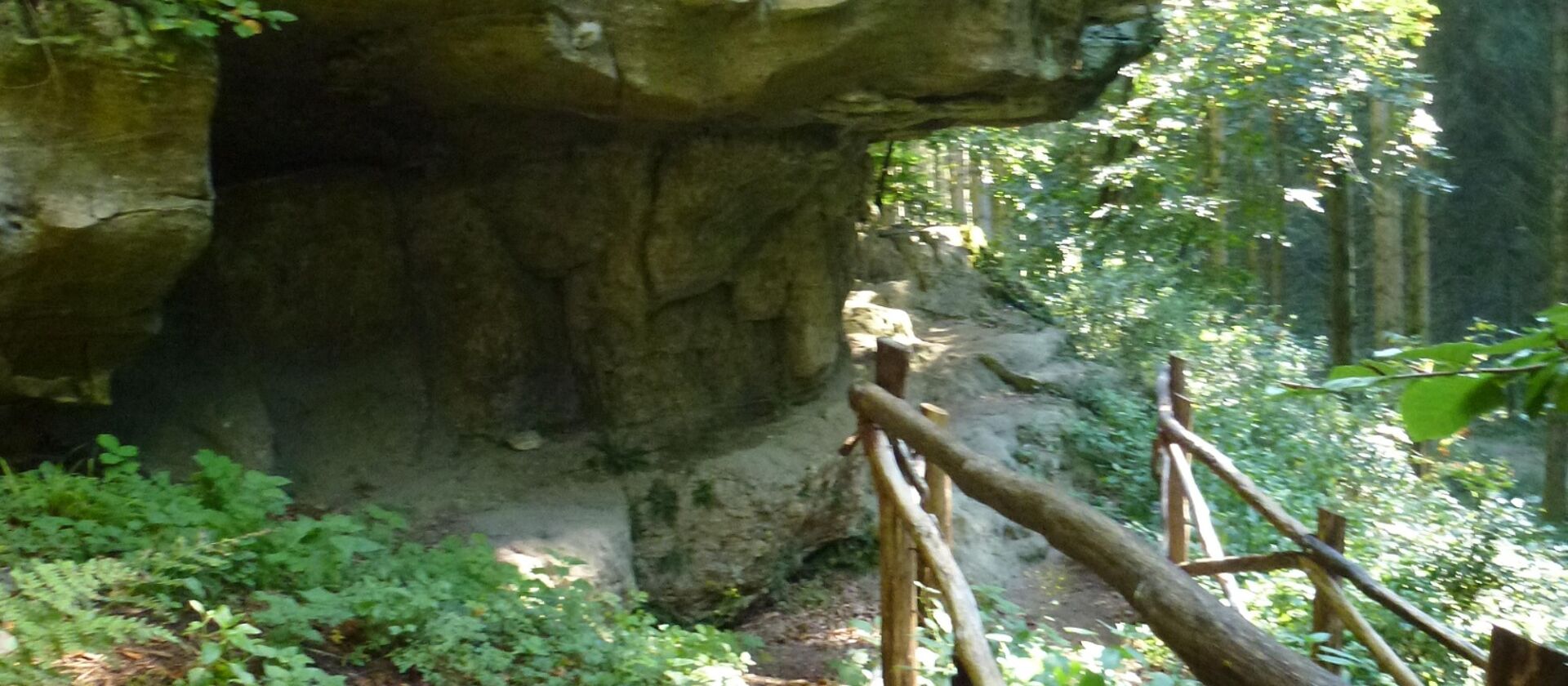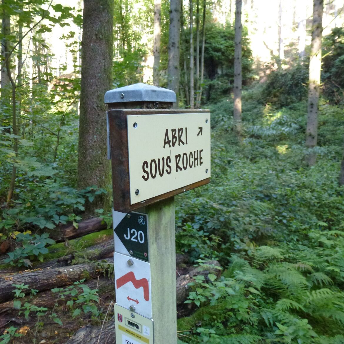 Hoogtepunten van de tocht zijn een steentijdwoning "abris sous roche" en een romantische bosvijver met een rustplek.