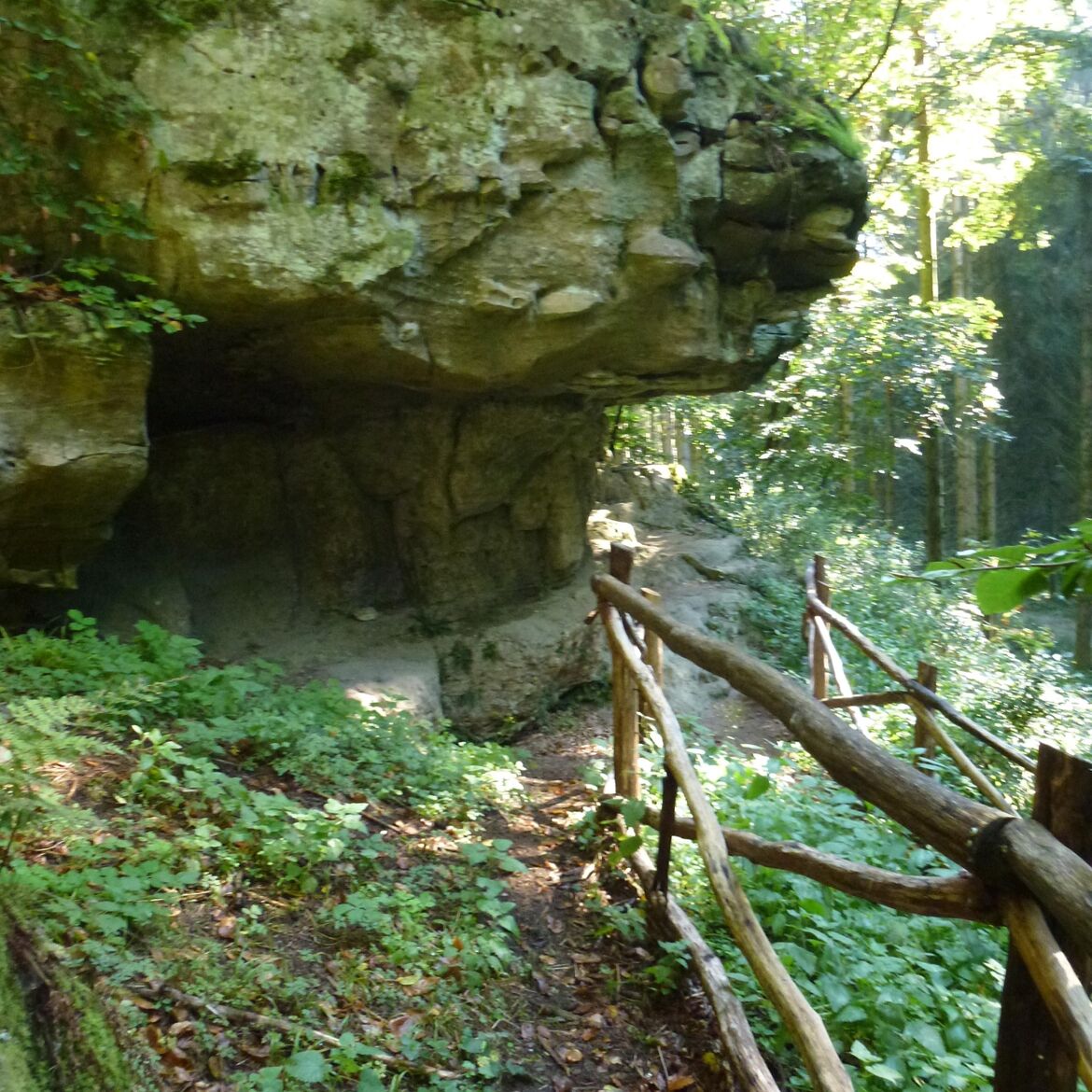 Het wandelpad van Schwäibësch loopt van Godbrange over de kleine plaats Schilzbierg, naar de Houbierg-heuvel en vervolgens naar het bos van Schwäibësch. Dit schilderachtige, rustige bos kreeg zijn naam lang geleden vanwege de sterke populatie wilde zwijnen. Het pad voert langs een overhangende rots, waarvan er veel zijn in de regio. Mensen uit het stenen tijdperk gebruikten deze natuurlijke rotspartijen als woningen.